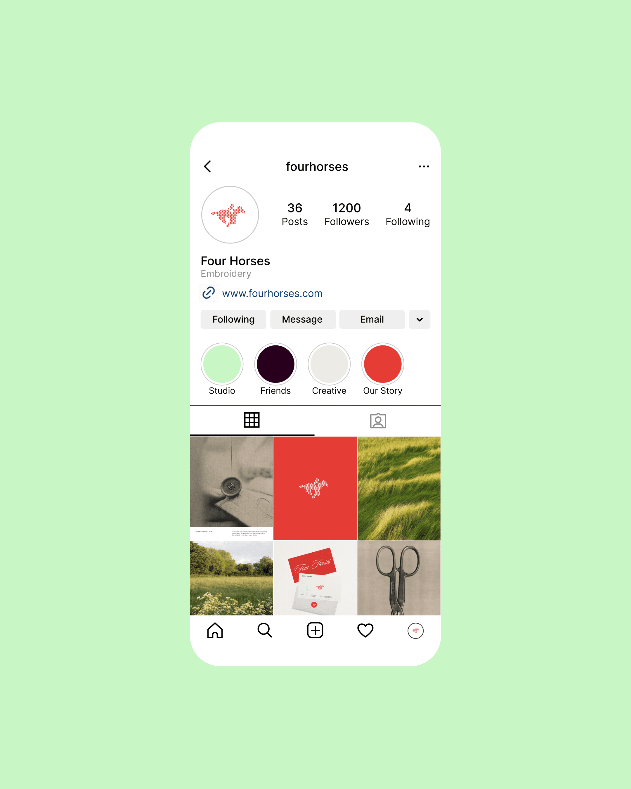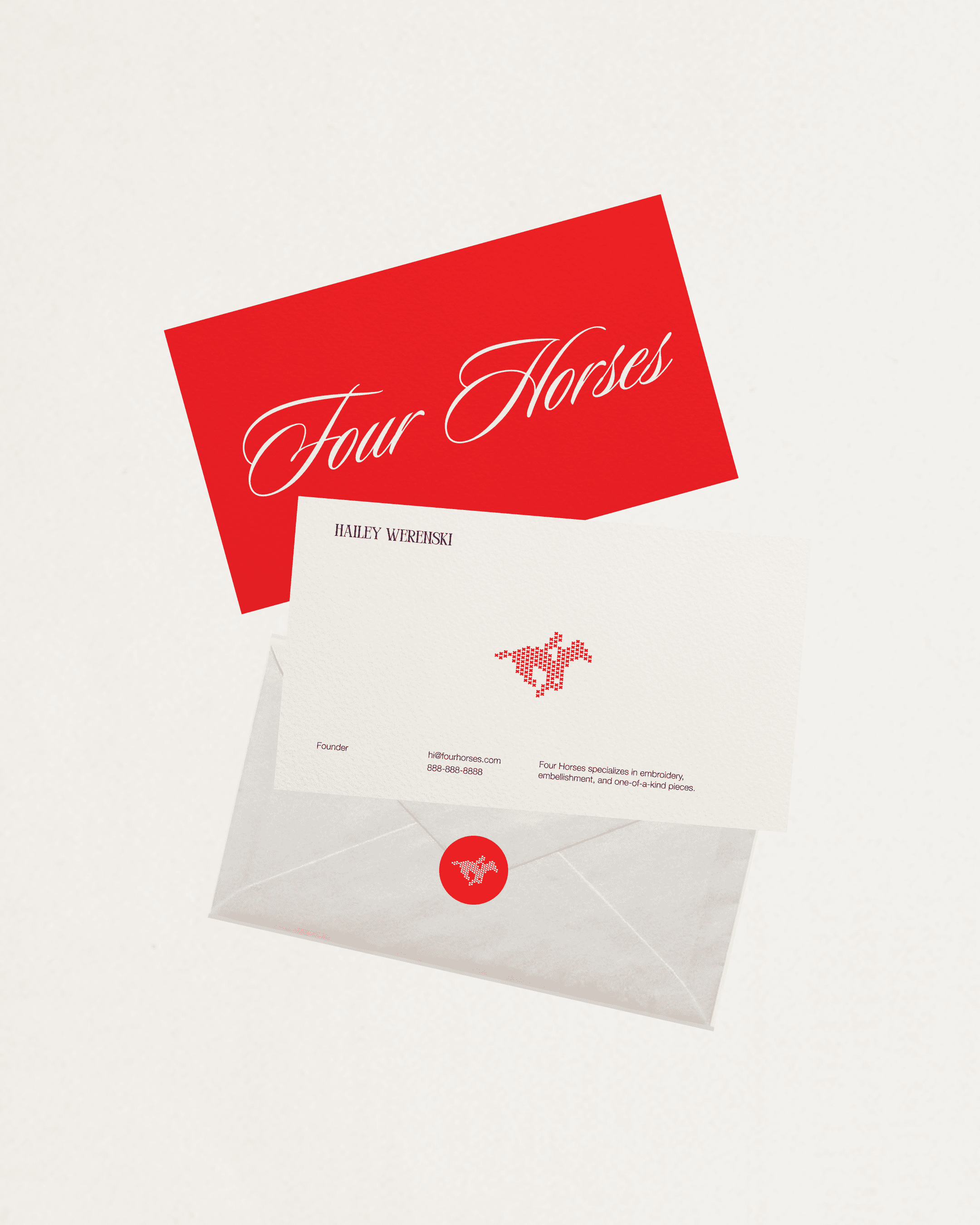 Had a time stitching up a fresh brand for Four Horses. A classic refresh situation - taking an existing business born in a college dorm room and renaming + reshaping it for the years ahead. As a custom merch & embroidery business, we were inspired by stitching, texture, and tooling.