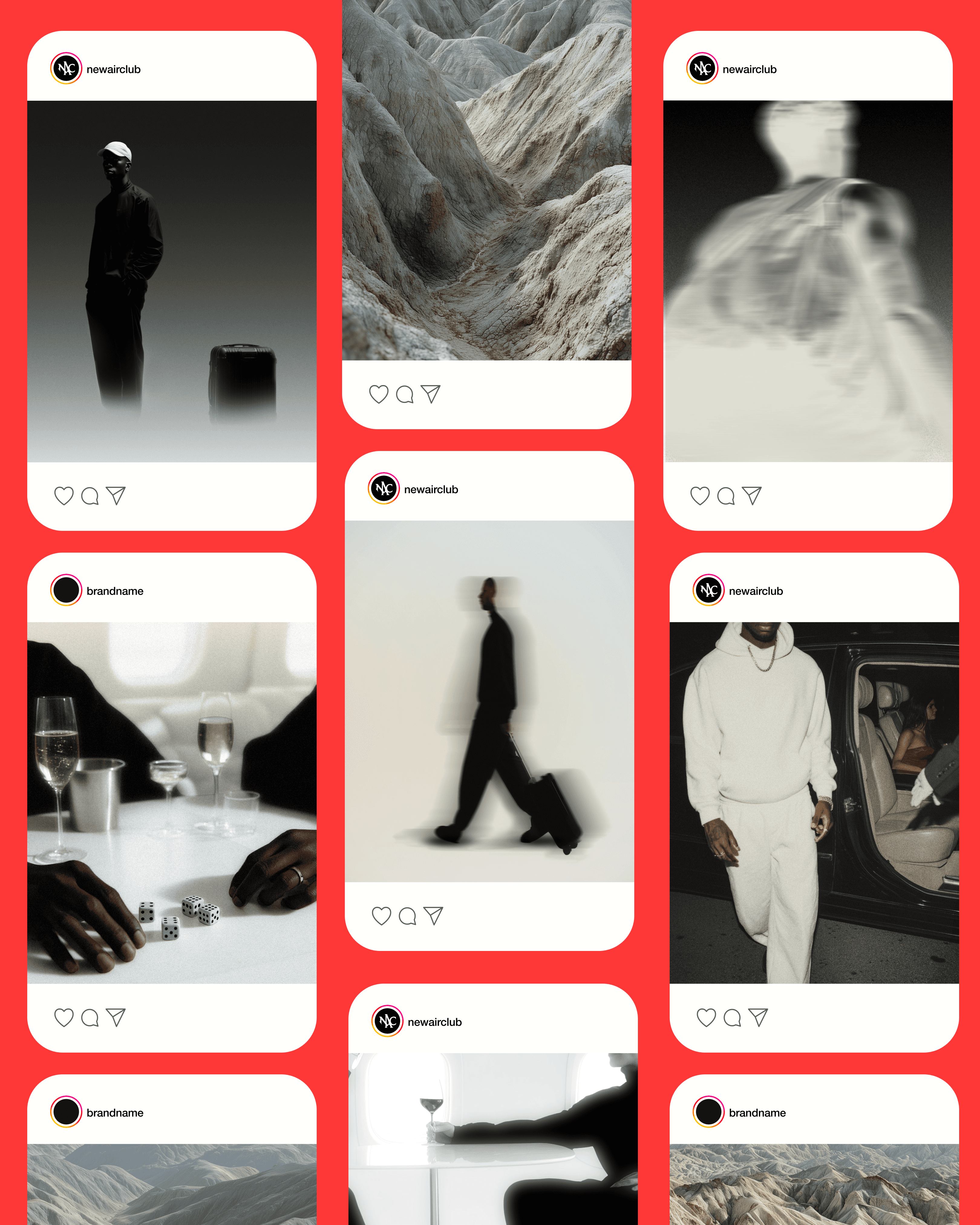 New Air Club came to us with a challenge. Build a fresh, contemporary brand for a private jet charter service built for professional athletes. In a category full of stiff, corporate aviation brands, we positioned New Air Club to break the mold and speak directly to athletes with a look and voice they actually connect with.